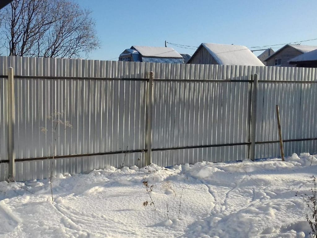 Недорогой металлический забор из профнастила 150 метров в Железнодорожном