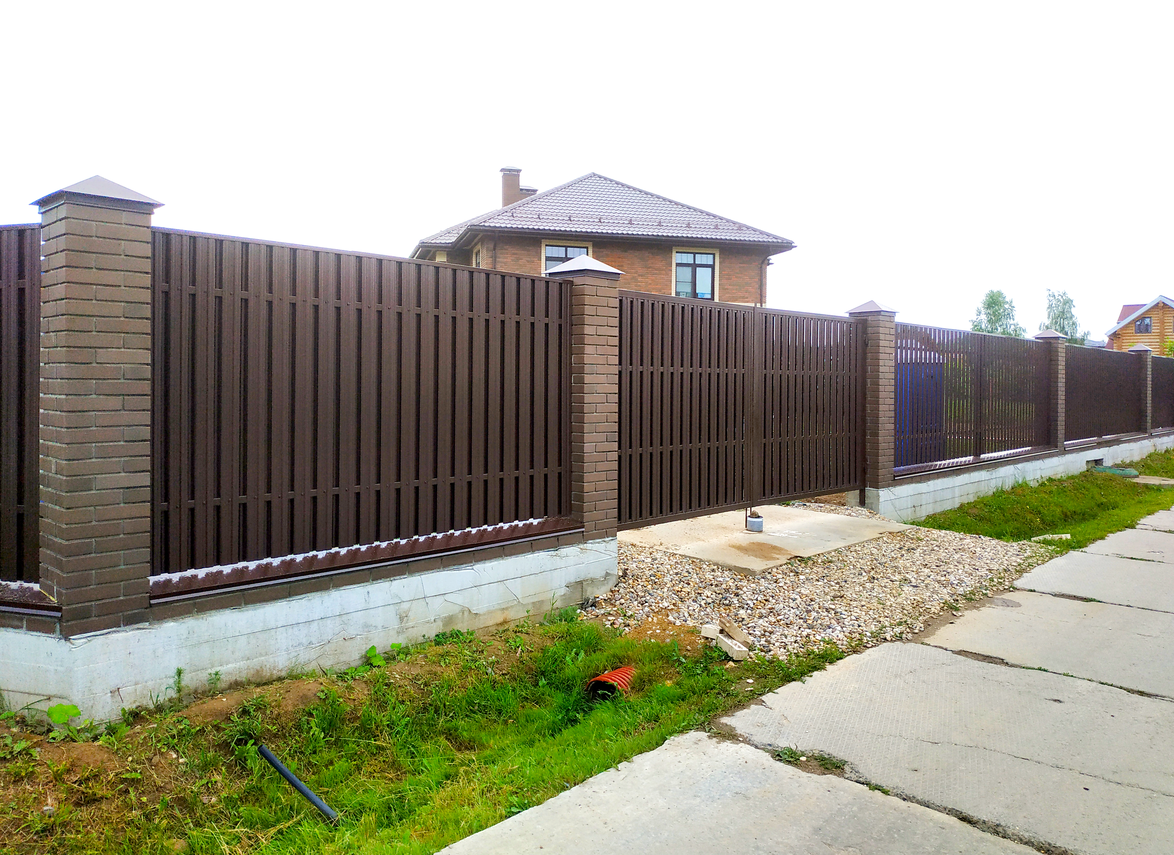 Заборы и ограждения из евроштакетника с кирпичными столбами 100 метров в Железнодорожном