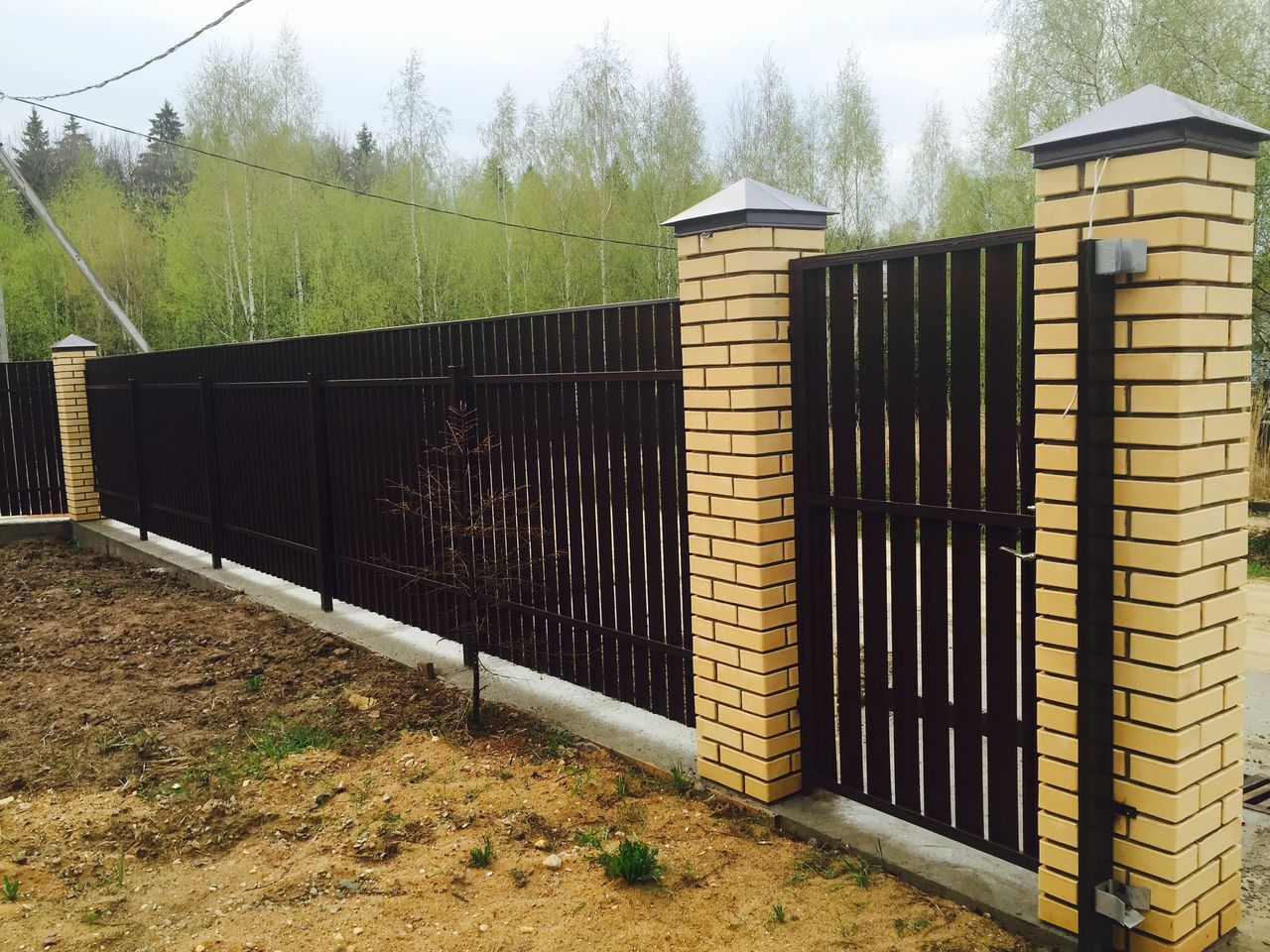 Заборы и ограждения из евроштакетника с кирпичными столбами 150 метров в Железнодорожном