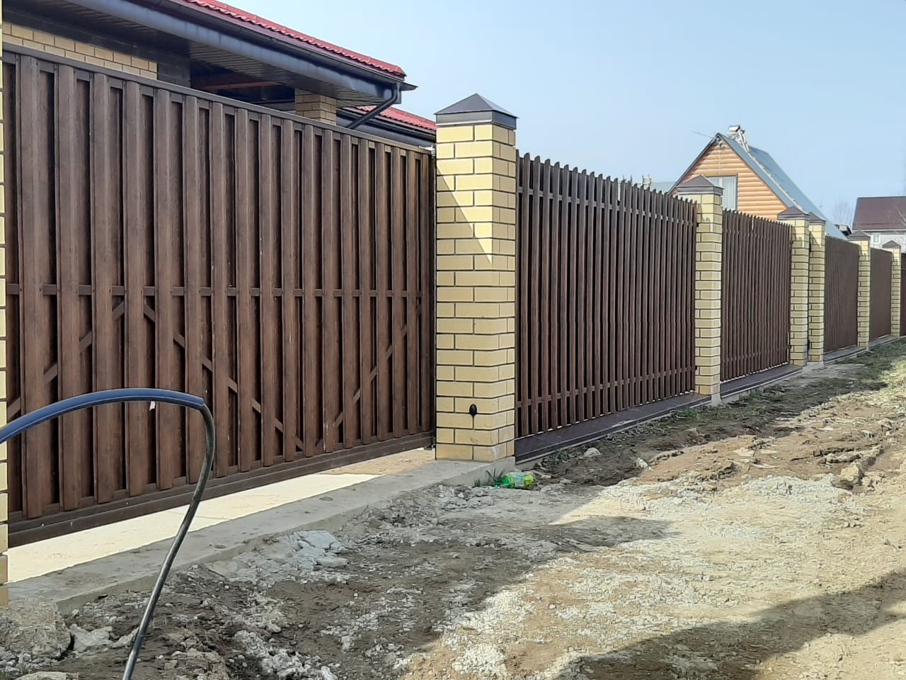 Заборы и ограждения из евроштакетника с кирпичными столбами 300 метров в Железнодорожном