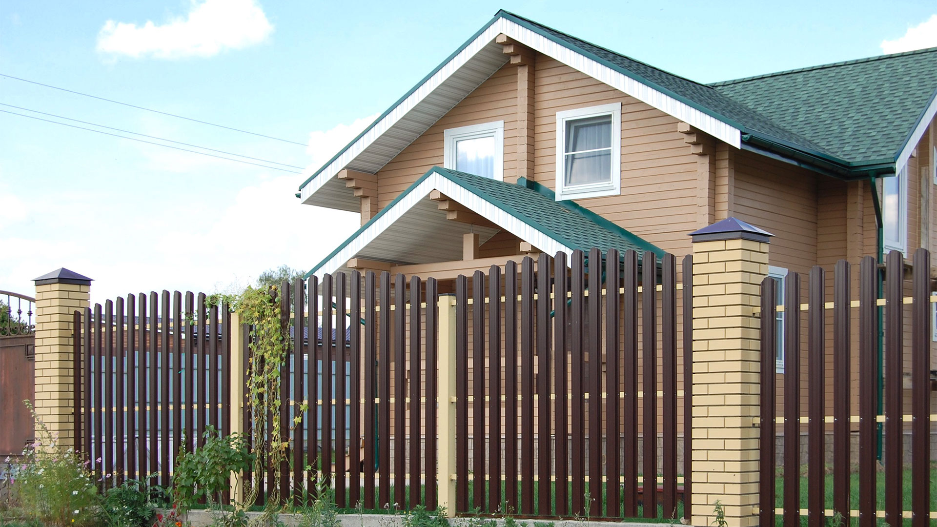 Заборы и ограждения из евроштакетника с кирпичными столбами 30 соток в Железнодорожном