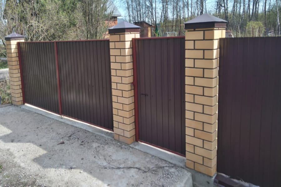 Заборы и ограждения из профнастила с кирпичными столбами 300 метров в Железнодорожном
