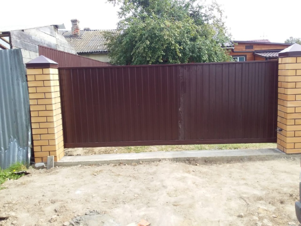 Заборы и ограждения из профнастила с кирпичными столбами 40 метров в Железнодорожном