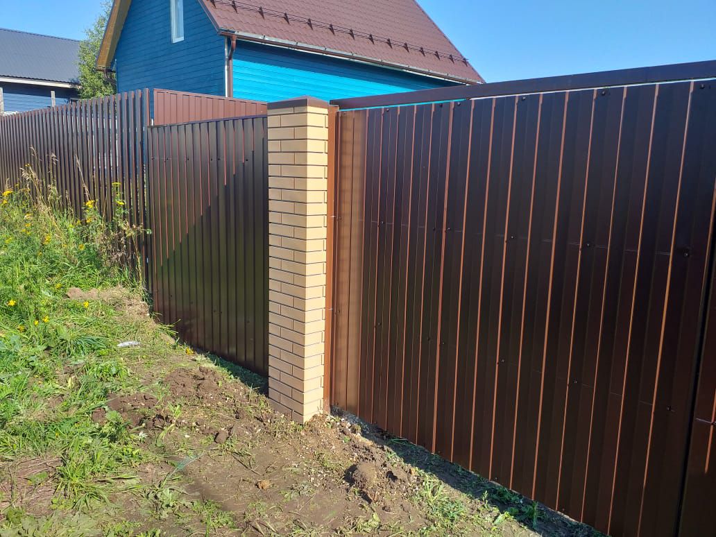 Заборы и ограждения из профнастила с кирпичными столбами 50 метров в Железнодорожном