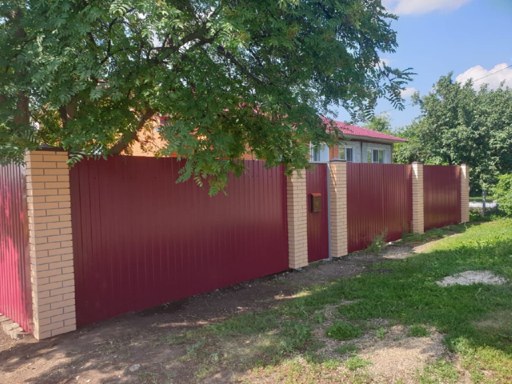 Заборы и ограждения из профнастила с кирпичными столбами 70 метров в Железнодорожном