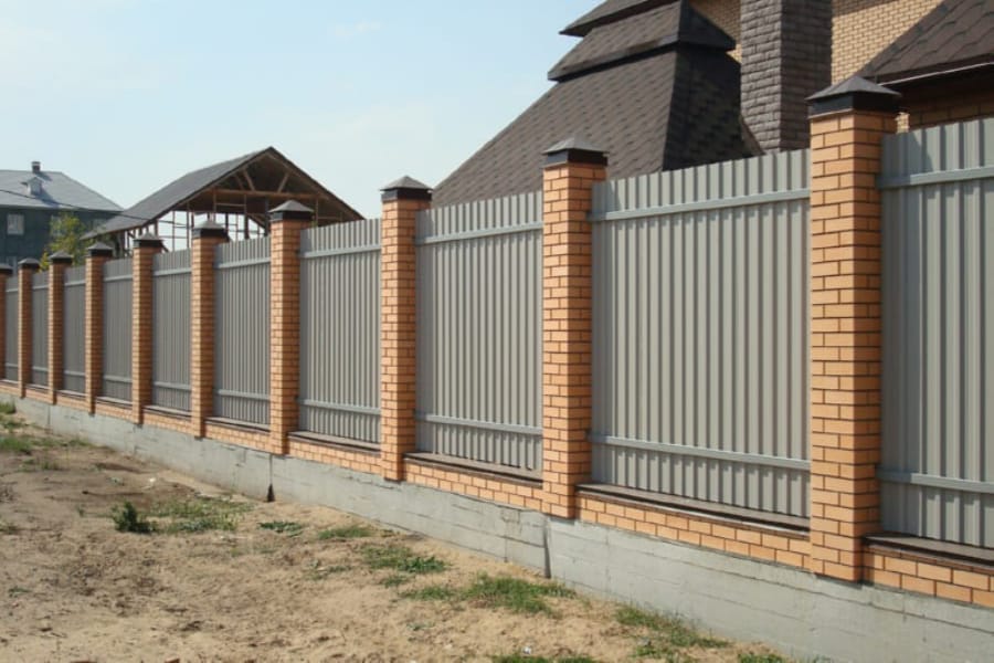 Заборы и ограждения из профнастила с кирпичными столбами 6 соток в Железнодорожном